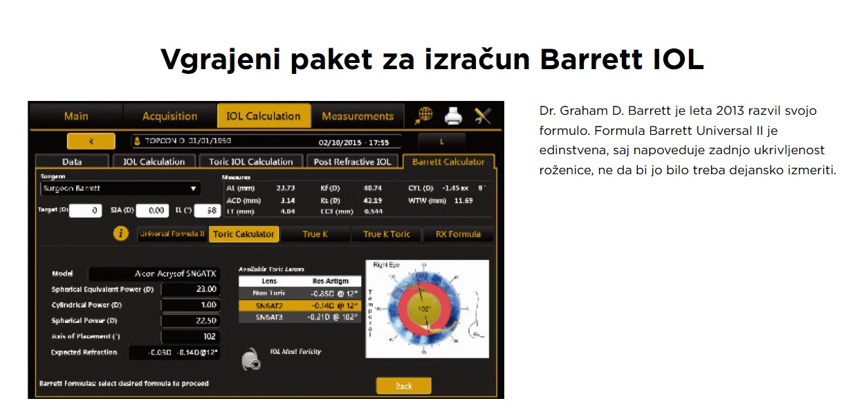 Topcon z novim ALADDINOM predstavlja popolno sliko. ALADDIN je v podporo kirurgu ne samo pri izbiri sferične dioptrije IOL, temveč tudi pri izbiri primerne IOL za posamezno oko.