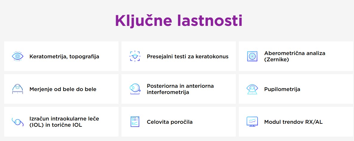 ✔ Kombinacija optičnega biometra in roženičnega topograf