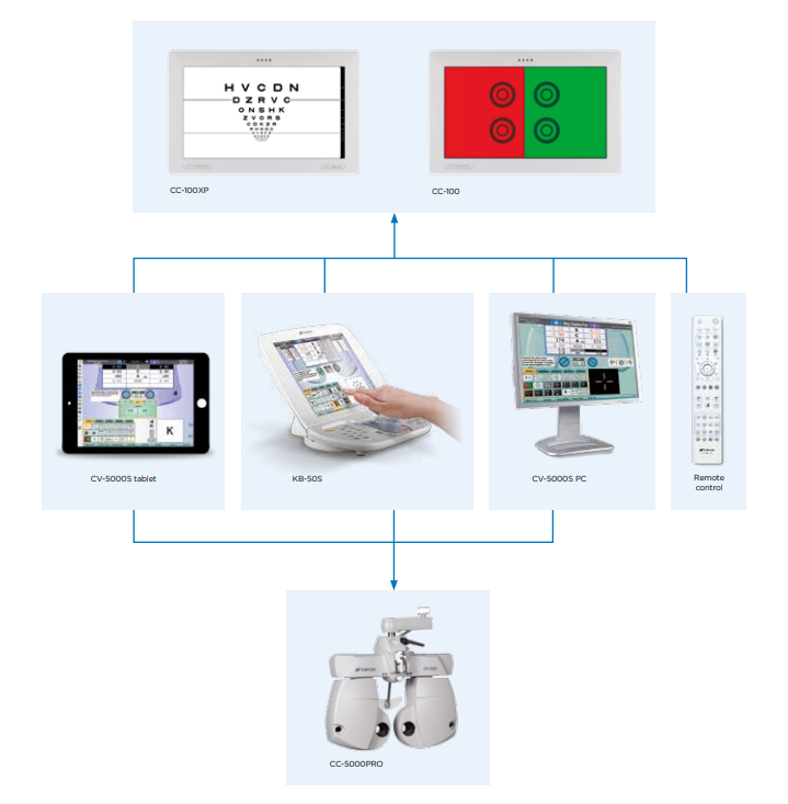Topcon CC-100XP je LCD LED sistem optotipov, ki vključuje vse pomembne teste ostrine vida, binokularni, barvni in test kontrastne občutljivosti. Ima visokoločljivostni 22" (56 cm diagonala) zaslon z visokim kontrastom in svetilnostjo. CC-100XP se lahko upravlja s samodejnim Topcon CV-5000 PRO foropterjem, s priloženim IR daljinskim upravljalnikom ali z virtualnim daljinskim upravljalnikom na PC računalniku (priložen softvare).